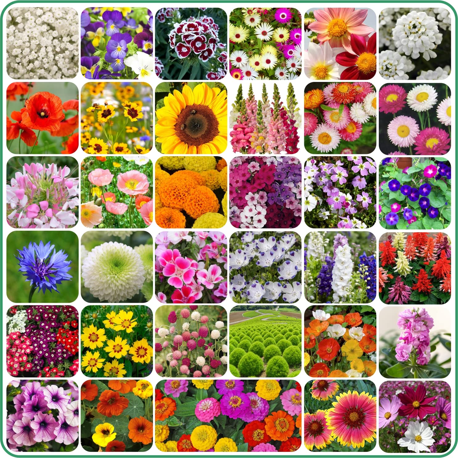 Unleash a kaleidoscope of color in your garden with this 35 Variety Flowers Seeds Combo Pack! This carefully curated selection offers a stunning array of blooms, ensuring a vibrant and ever-changing display throughout the growing season. Discover a delightful mix of annuals, biennials, and perennials, chosen for their beauty, ease of growth, and ability to attract beneficial pollinators. From charming cottage garden favorites to striking statement flowers, this pack provides endless possibilities for creating breathtaking borders, containers, and cut flower gardens. Embark on a colorful gardening adventure and transform your outdoor space into a floral paradise!